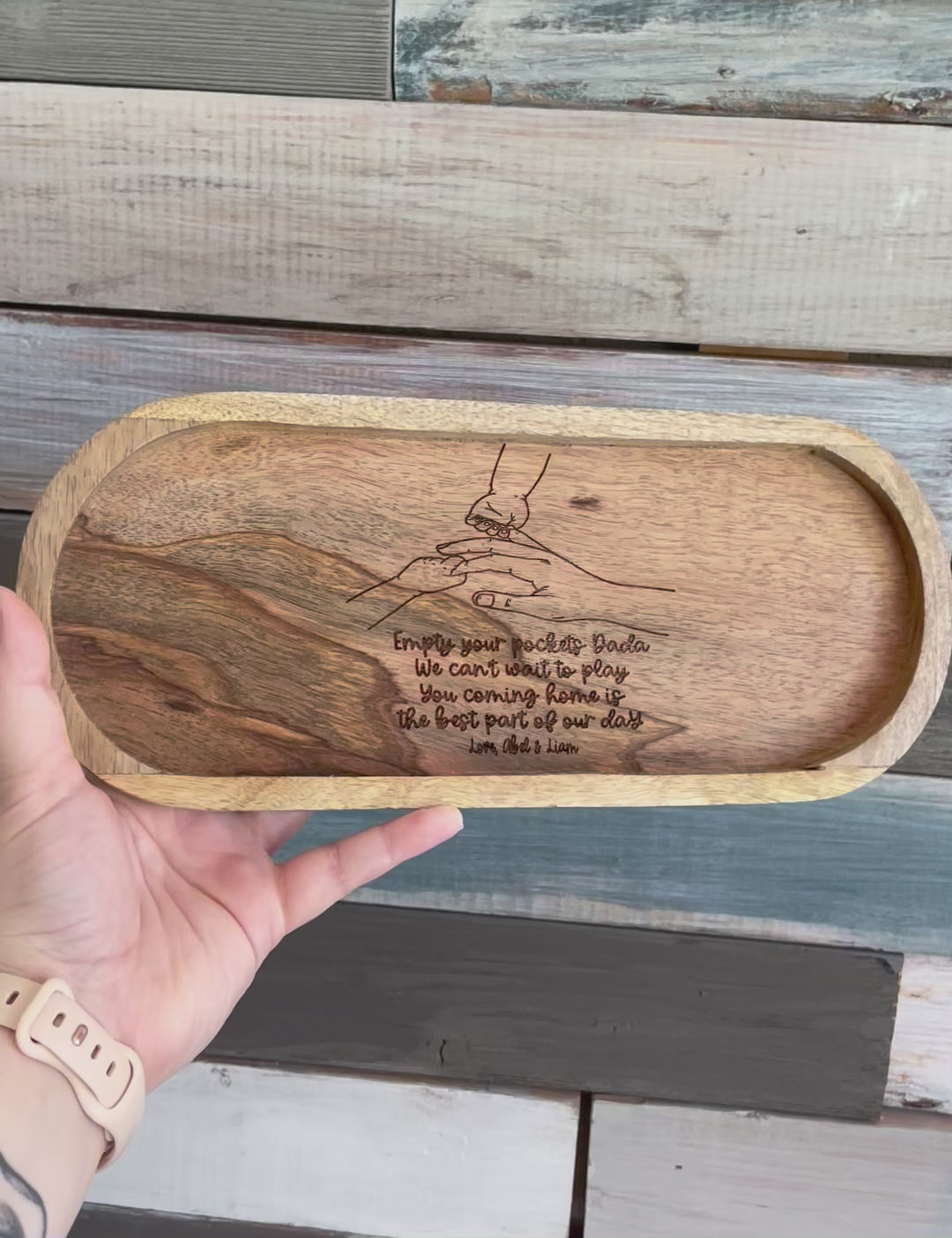 These wooden, engraved catch all trays are perfect for Father’s Day or just a great gift in general!